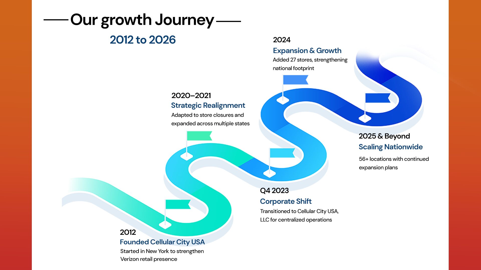 Cellular City USA is a fast-growing Verizon Authorized Retailer with 56 locations nationwide. Built on a customer-first approach, we provide trusted wireless solutions including devices, plans, and home internet. Our focus is simple—deliver reliable service, expert guidance, and a seamless experience for every customer.